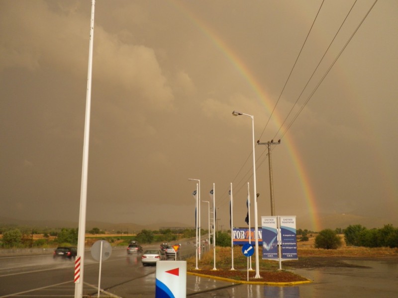 Ο καιρος με απιστευτες εναλλαγες, ηλιος,βροχη,ουρανιο τοξο,ζεστη, κρυο.